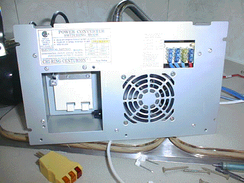 I removed the original battery and box as well as the converter. The converter contained the 12V fuse panel and the 110V breaker box. I gutted the converter and kept only the 12V fise panel and the faceplate to cover the hole. I needed to do this because I had no room for the converter itself. The front panel is vented so it makes a nice air intake for venting heat from the batteries.